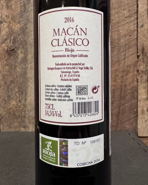 Bodegas Benjamin de Rothschild Vega Sicilia Macán Clásico Rioja 2016