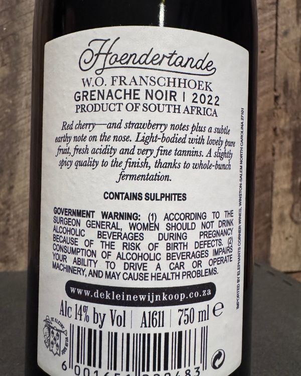 In South Africa’s Franschhoek valley, Wynand Grobler at De Kleine Wijn Koöp is making some seriously good Grenache. His 2022 “Hoendertande” (hen’s teeth) Grenache Noir is a total charmer. It’s got that vibrant, ruby-red glow that lets you know right away you’re in for something fresh and energetic, not a heavy, over-extracted bruiser.