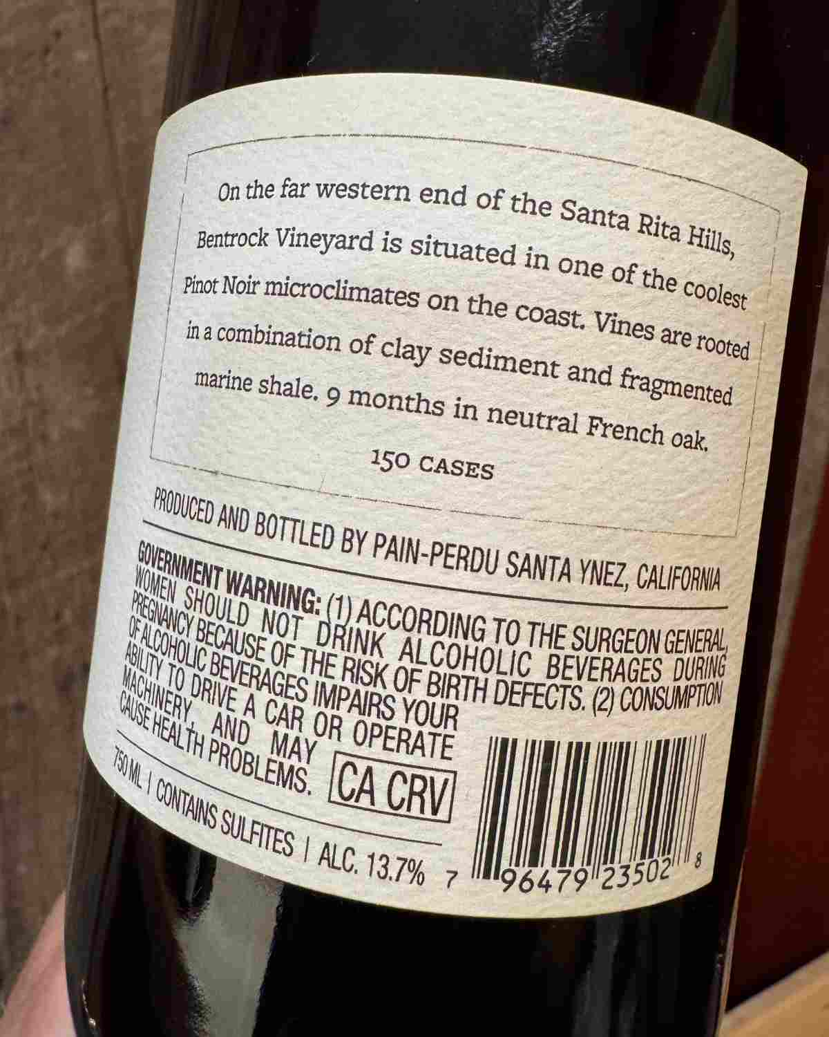 Pain-Perdu Pinot Noir Bentrock Vineyard 2023