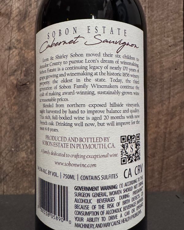 Sobon Estate Amador County Cabernet Sauvignon 2023